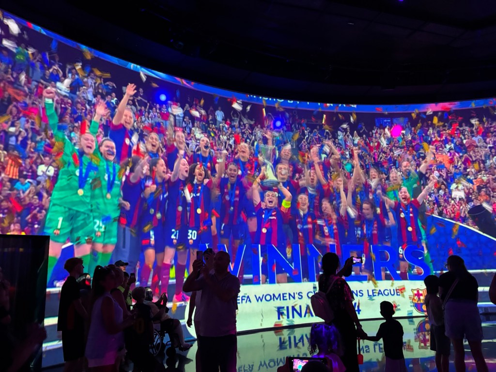 O historii klubu, o jego haśle przewodnim Més que un club (Więcej niż klub), słuchałam sobie w samolocie. I bardzo się z tego cieszę – dzięki temu łatwiej było mi poruszać się po muzeum klubu, do którego zawitaliśmy. Ogłoszenie w gazecie z końcówki XIX wieku o poszukiwaniu mężczyzn zainteresowanych grą w piłkę nożną, artefakty dokumentujące najważniejsze wydarzenia z historii klubu – wszystko podane zgodnie z najnowszymi trendami, w imersyjnej ekspozycji, gdzie nawet osoba zupełnie niezwiązana z klubem (a nawet niespecjalnie zainteresowana piłką nożną) poczuje dreszcze. Naprawdę dobrze zainwestowany czas i uzasadniona inwestycja – około 40 euro za osobę.