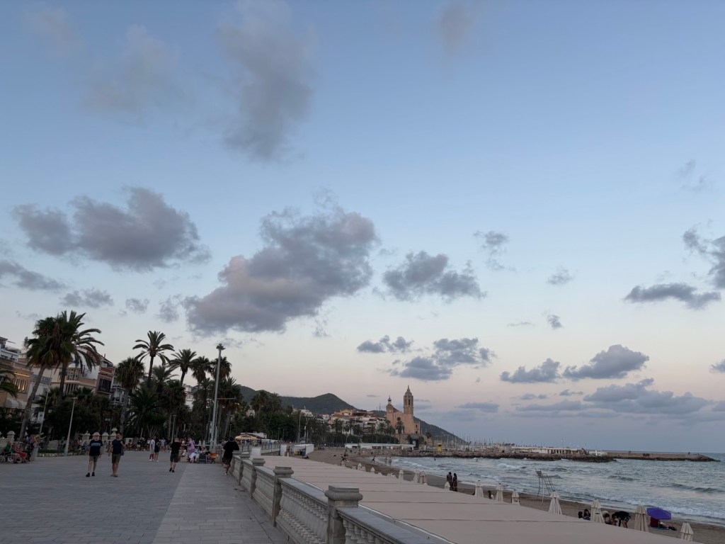 - spacerowaliśmy – każde z nas przemierzyło nadmorską promenadę wzdłuż i wszerz niezliczoną liczbę razy. Okolice kościoła świętego Bartłomieja i świętej Tekli (Església de Sant Bartomeu i Santa Tecla) i pobliskiego Palau de Maricel obeszliśmy o poranku, w południe, wieczorem, o złotej godzinie. Przyglądałam się rzeźbom przy promenadzie niezliczoną ilość razy. Czasami skręcaliśmy do centrum miasteczka, żeby zjeść przepyszne lody i zrobić drobne zakupy,