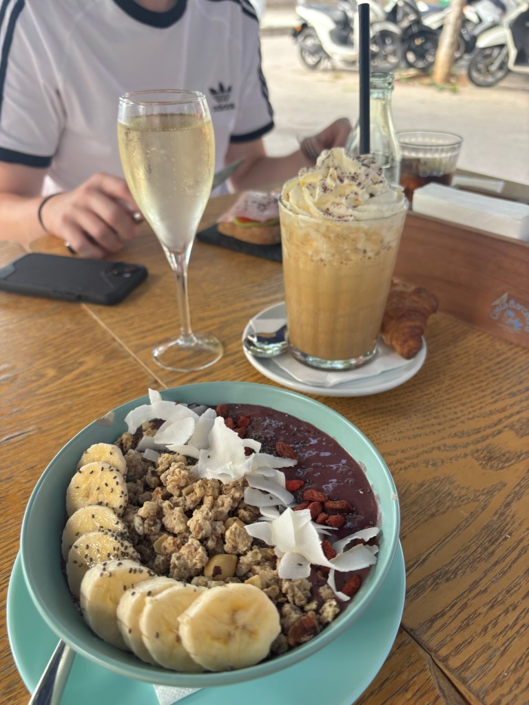 Śniadania. W wersji globalnie zdrowej – açai bowle. W wersji bardziej lokalnej – jamón serrano, queso i odrobina zieloności z orzechami dla równowagi.