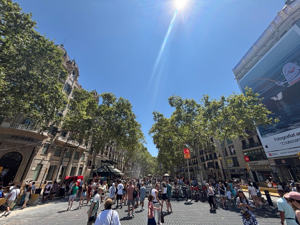 Oh, jak wszyscy internetowi twórcy odradzają La Ramblę! Bo tandetna, bo zatłoczona, bo to nie jest prawdziwy klimat Barcelony… W dodatku miałam w głowie opowieść rodziców, że ktoś z nich (albo znajomych) właśnie tam padł ofiarą kradzieży.
